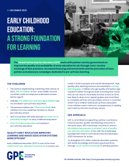 - Sector planning and analysis: GPE strengthens countries’ capacity to effectively plan, develop and implement quality early learning programs.