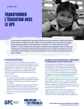 Découvrez comment le GPE mobilise des partenariats et des investissements dans près de 90 pays partenaires afin de transformer les systèmes éducatifs pour qu’aucun enfant ne soit laissé de côté.